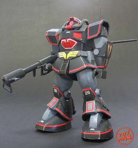 カラーリングはガンポン「ドム」用のプロトドムを参考にしました。 といってもこまかなレシピが乗っておらず、あまり参考にならんかった・・・。 |