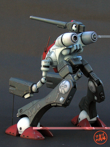 完成日:2007.11.23 【 製 作 】 マクロスキット初の完成品となりました!このグラージですが、何年か前にチャレンジしているんですが、自分の力量不足のため 挫折・放置となっていました・・・。しかし、某コンペ参加対象ということで、今回は絶対完成してやる!と当時のリベンジみたいな 感じで取りかかりました。 スタイルは腕の付け根が設定画と異なっていますが僕的にはO.K!(←手抜き・・・あかんやろ) ただし、そのまま作ってしまうと 足が開かないので股関節と足首ににボールジョイントを仕込みました。これは必須だと思います。あと細かいところですが腕の インパクトキャノンのエッジがだるかったのでエッジカチカチにしたんですが、そのときモールドを全部削り落としたのでプラ板で作り 直し、また足の合わせ目上のモールドが修正が大変だったのでこれもプラ板、そして市販パーツで作り直しました。 |