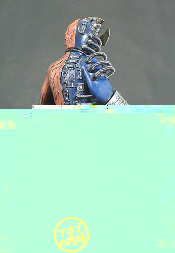 ブラック(ラ)+FBを全面塗装後、コバルトブルー(ラ)+ブルー(ラ)+ブラック(ラ)少々+FB、 コバルトブルー(ラ)+FBでグラデ塗装。細かな機械部分はシルバー(エ)でドライブラシ。 赤、黄色の丸はシルバー(ラ)を筆塗り後、クリアーイエロー(エ)、クリアーレッド(エ)を。 最後に汚しに少しだけフラットブラウン(エ)をうす塗り。 |