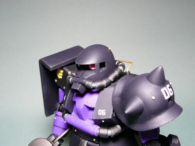 モノアイを可動するように変更、ひさし部分をMGっぽくなるように少し前に移動動力パイプは市販のパーツに