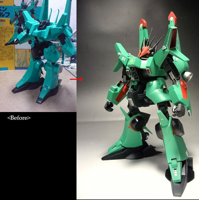 全て手が入っております。説明書に載っていたメガランチャー発射体勢のドーベンウルフ。
