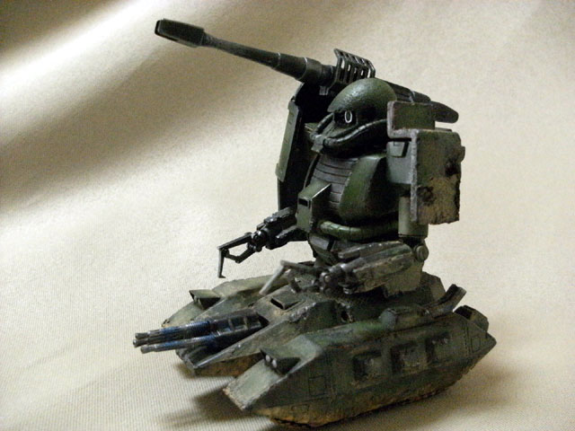 破棄同然だったザクタンクに、補用品としてストックしていたザクキャノンのキャノンユニットを取り付けて遠距離支援機体に改造。