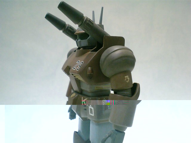 部分はニュートラルグレイで塗り分けています。肩や足のグレイ部およびキャノン砲と