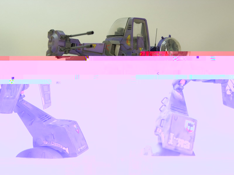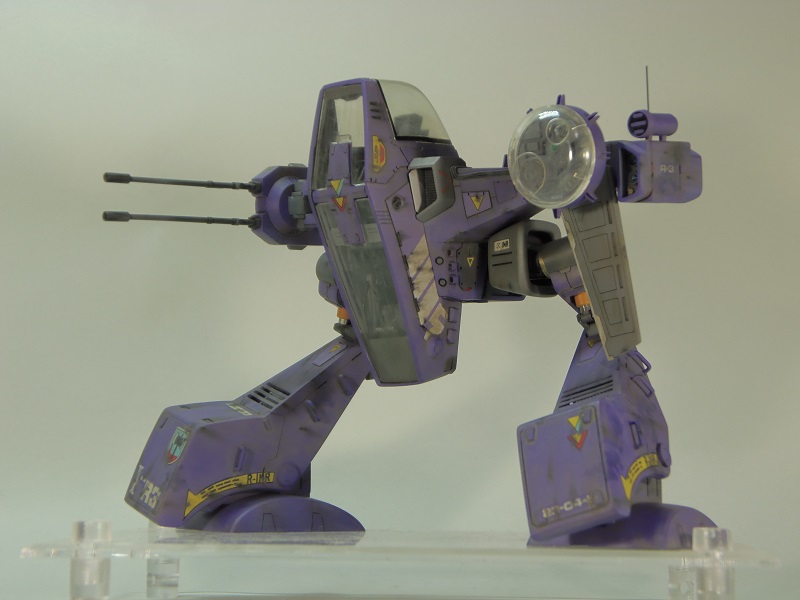 キットからの変更点は股関節をボールジョイント化し、膝関節にシリンダーを追加。スネ部分のダクト内にラジエター追加。