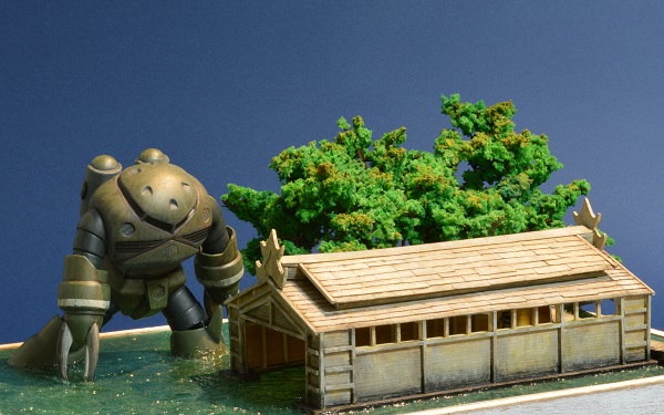 写真ではほぼ見えませんが、小屋の中にはザクマリナーがいるんです…
