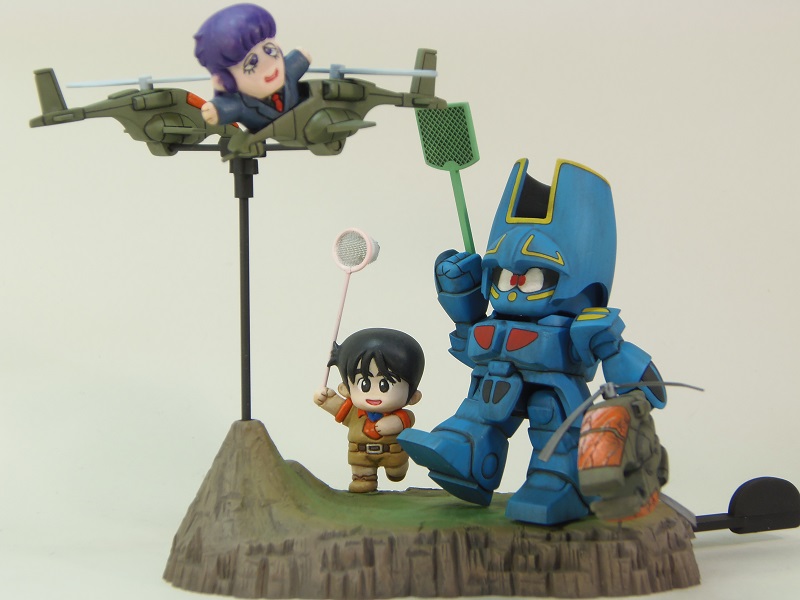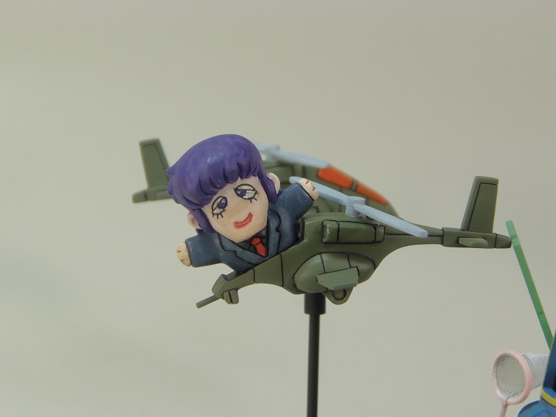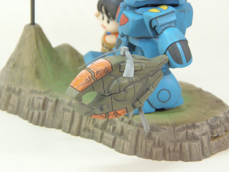 塗装はゴーグ、台座はエアブラシで塗装し、ヘリ、フィギュアは筆塗りで塗装しました。ホント筆塗りは難しいですね・・・(汗) |