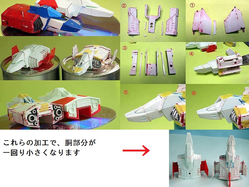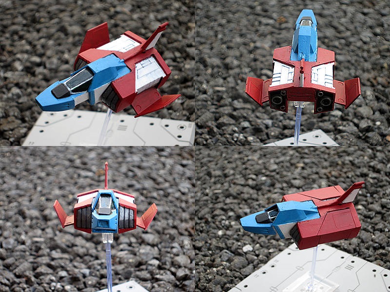 機首とキャノピーの隙間もあり胴も太く、イマイチな出来。そしてこのコアファイターの改修作例は、