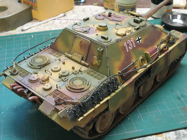 塗装乾燥後迷彩色であるダークグリーン、レッドブラウン(両色ともダークイエローと白を混色)を吹き付けた後、OVM(車外装備品)