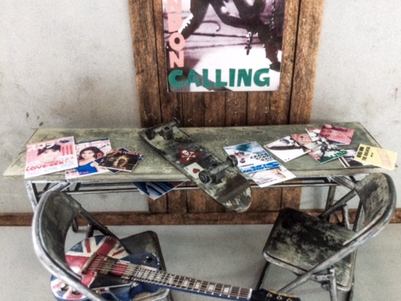 ガレージはスチレンボードとバルサ材で製作、コンクリート風に塗って汚してあります。