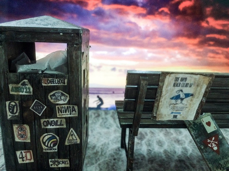 おまけにベンチとごみ箱、海沿いにある潮で朽ち果てた感じに仕上げてあります。