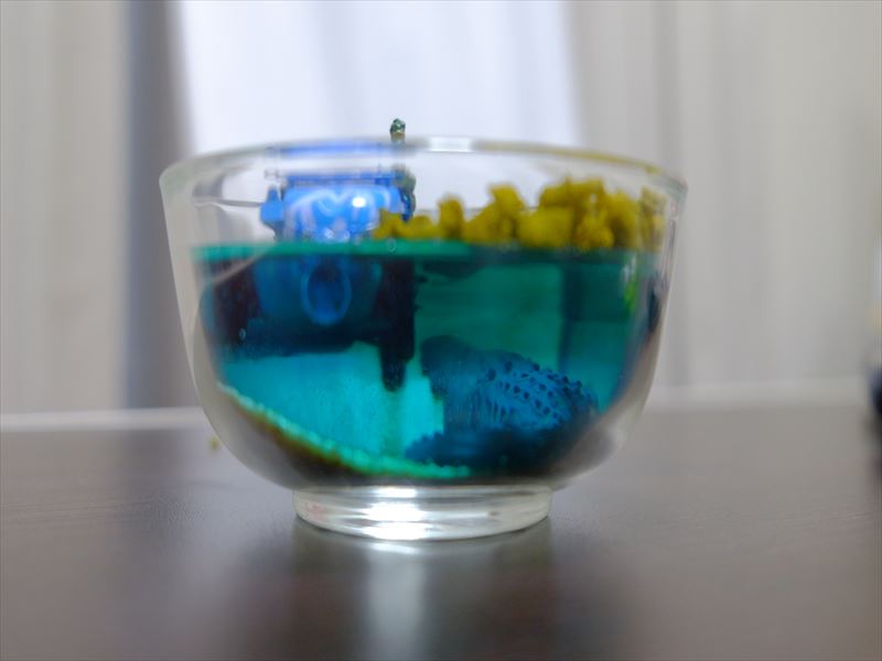 ワニはガチャガチャで引いたものをそのままドブンと沈めました。