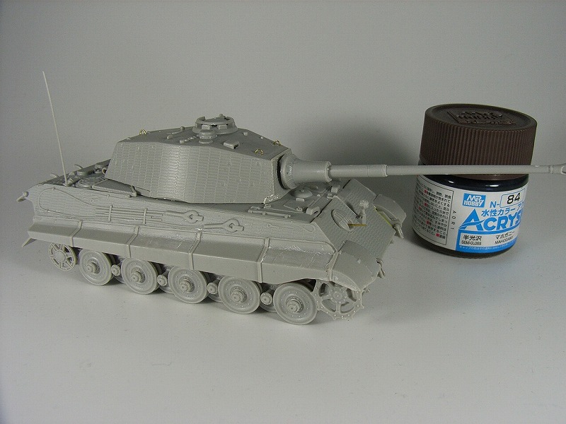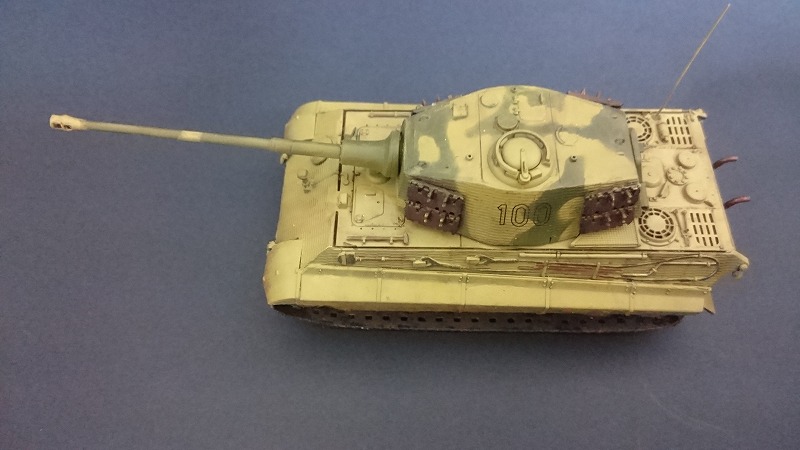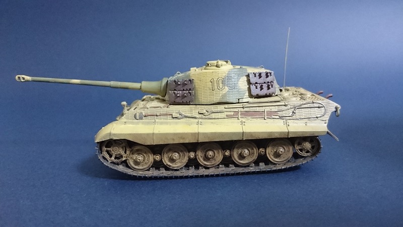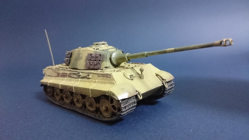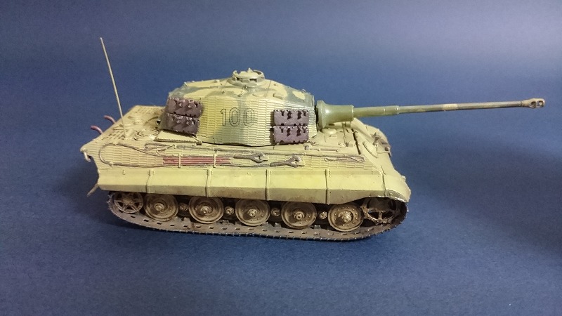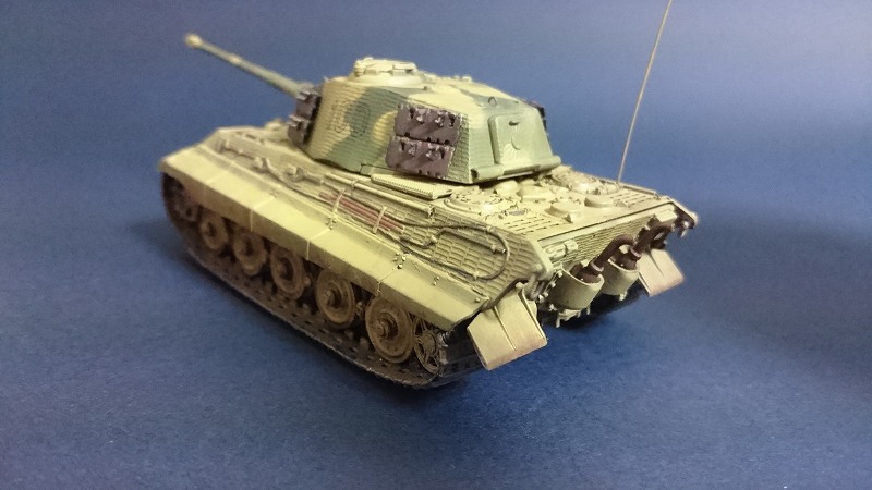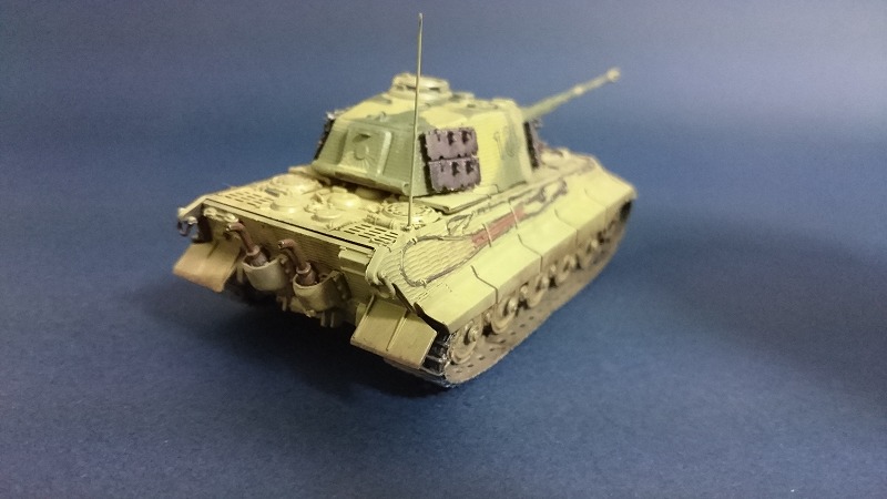 つや消しトップコートで完成です。チッピングはネットで調べたところ、大戦末期の戦車なので実車はあまり汚れていないという説があるらしいので、
