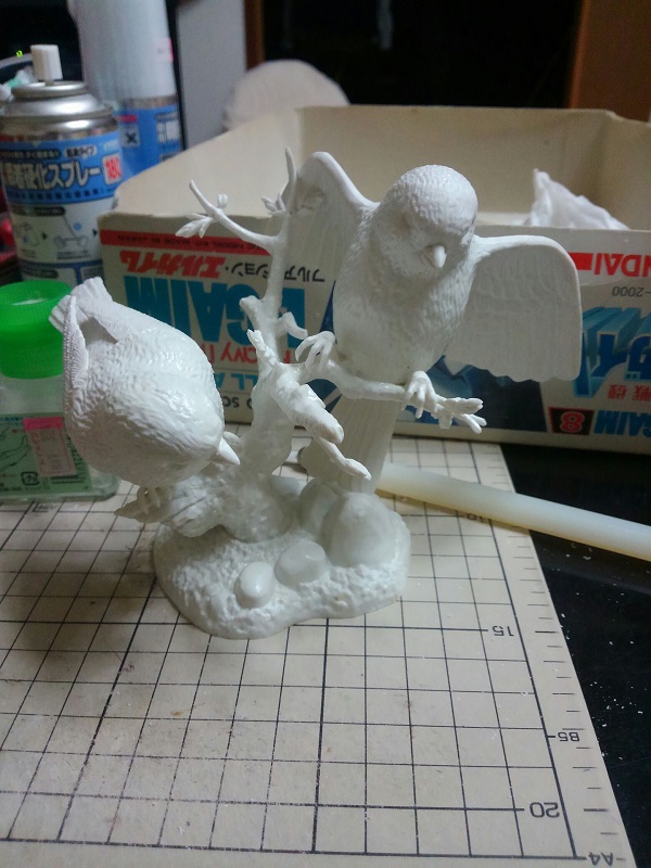 小鳥が塗りあがった当初あまりにも地味すぎて「あ〜、これはやっちまったかな」と若干後悔もしましたが、