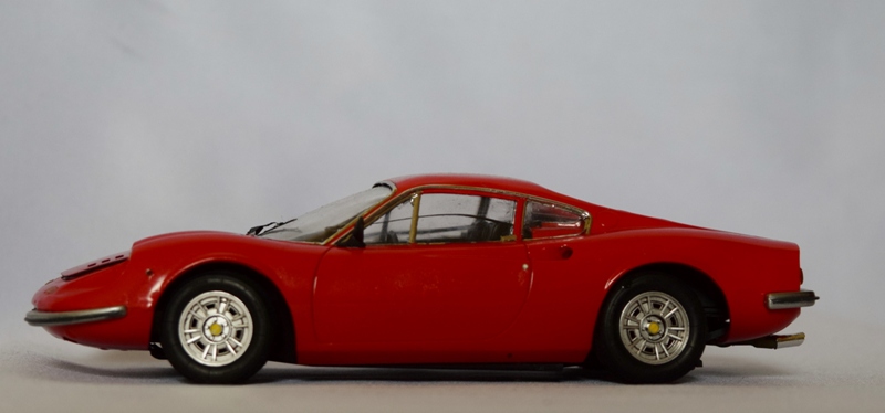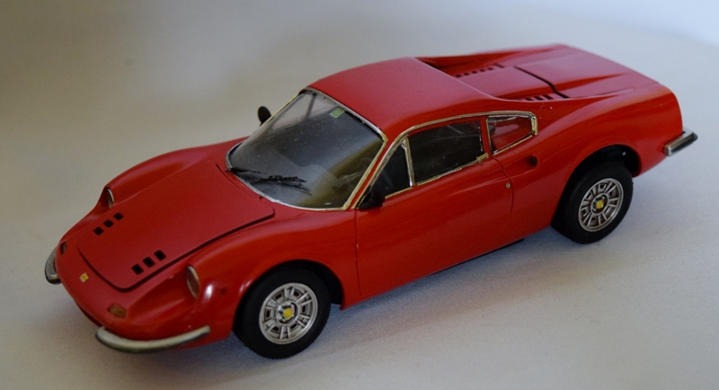 フジミ 1/24 ディノ246GT 自動車のキットは初めて作りましたが、本当に作り辛いです。 ガンプラの偉大さを痛感した次第ですw。 ボディの下地処理は過去最高に丁寧な処理をしましたが、 仕上げ直前でフロント部分が割れてしまうトラブル! これはキットのパーツ割に無理があります。 次に作るとしたらタミヤのキットに挑戦したいです。