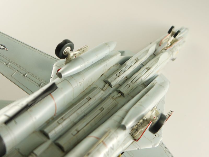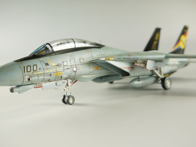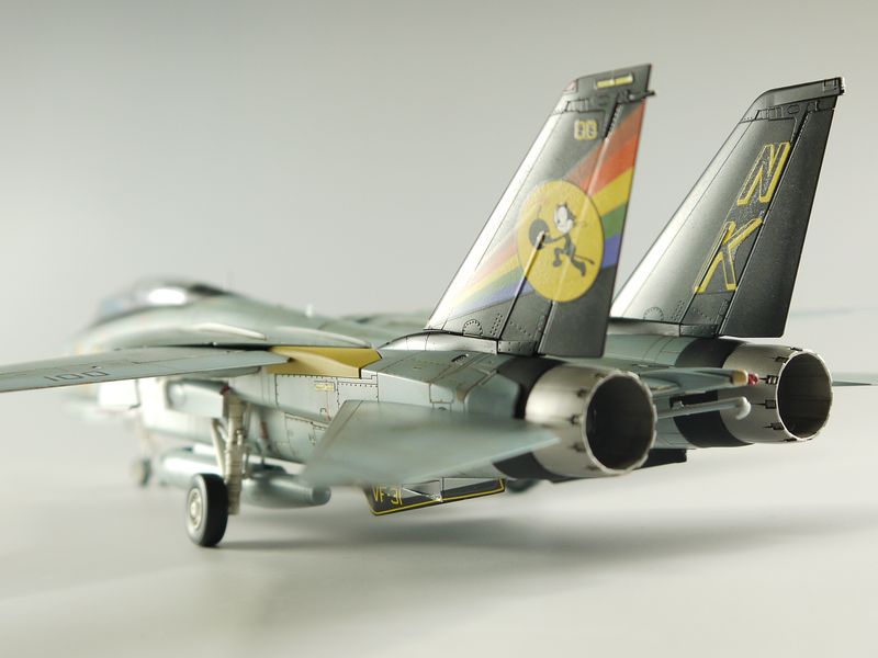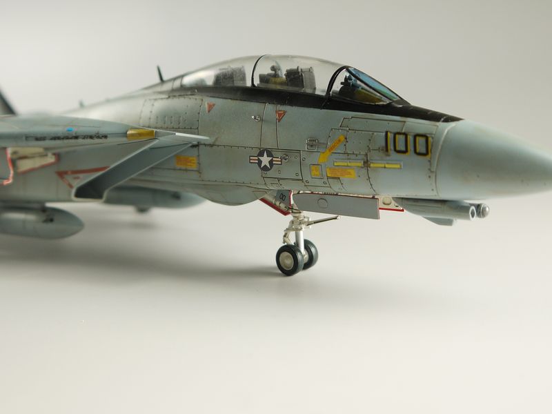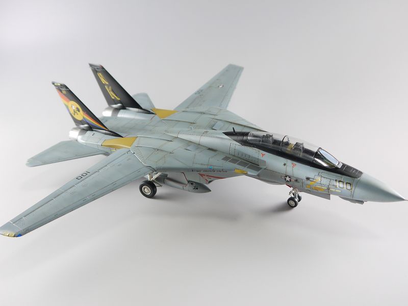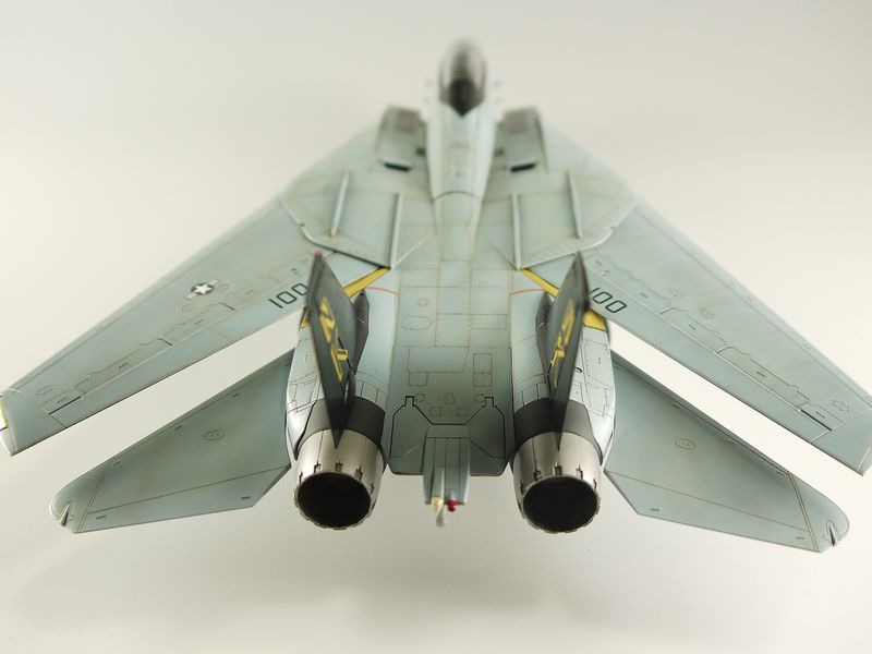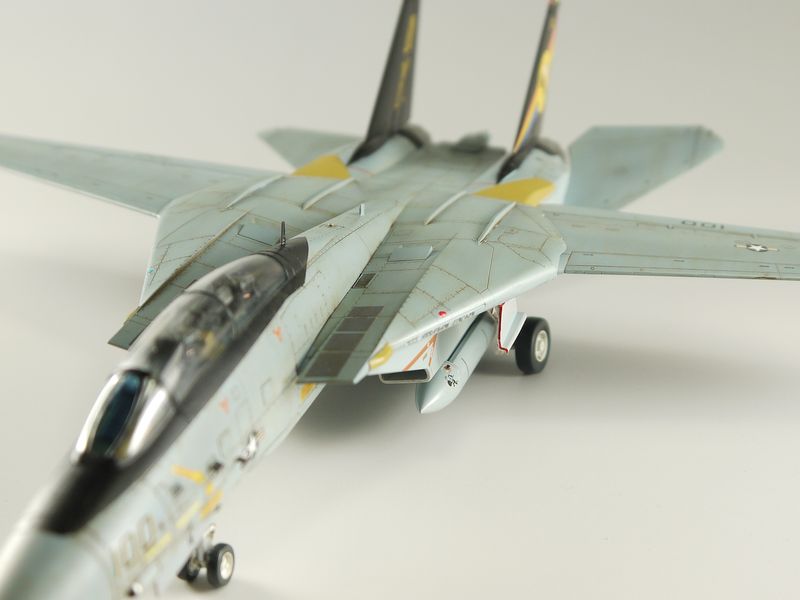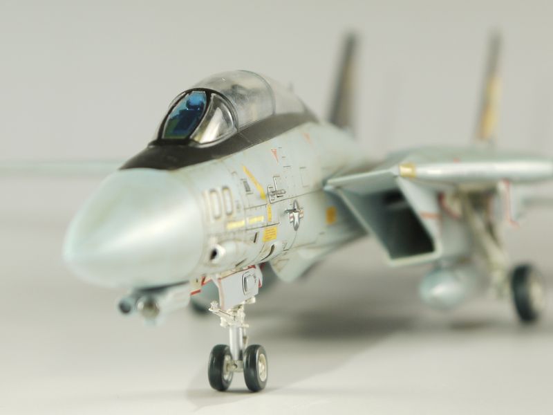 さて、製作も塗装もお手本通りで、特にアピールすることもないのですが、 コクピットをこつこつ作って、 マスキングしつつ、上面色307番、下面色308番をドバーっと塗装 デカールを貼ってフラットベース(なめらか)でコーティング エナメルでウォッシングして、 脚回りやアンテナを組み立てて完成!