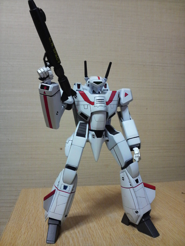 いじりポイントは、ガンポッドを構えたあのポーズにするために、肘関節を引き出し式に、インテークの大型化、頭部、背面部の作り直し。