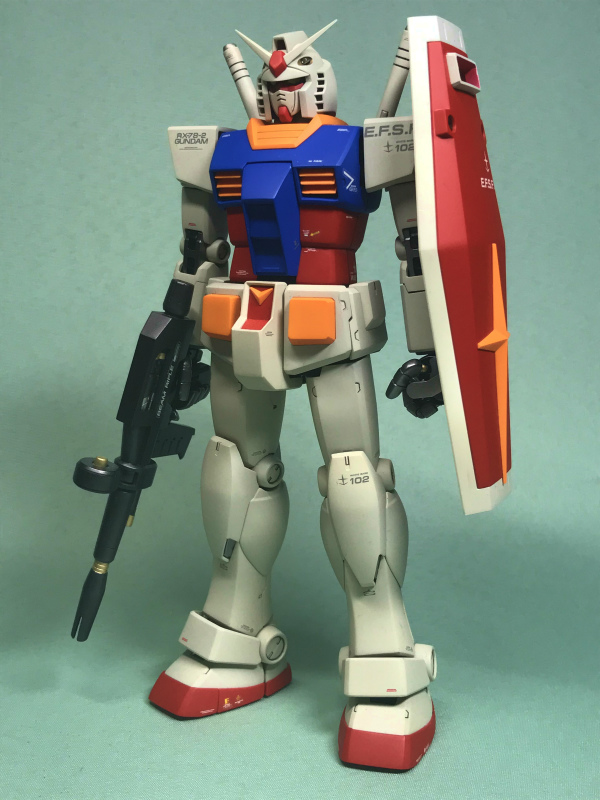 通常版は表面処理をしっかりやってよりガンダムっぽいカラーリングでの塗装を行い説明書通りデカールをフルで貼りました。